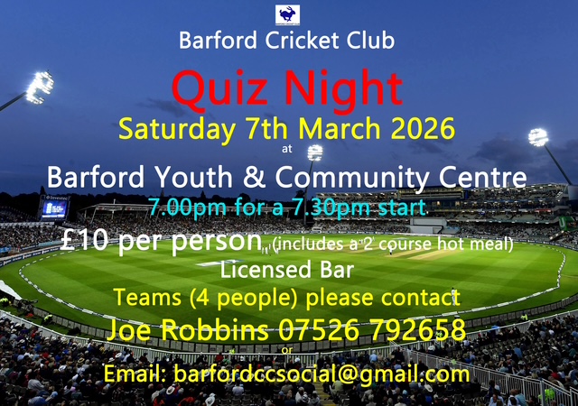 Our next event is the Quiz, scheduled for Saturday 7th March in the Barford Youth & Community Centre: